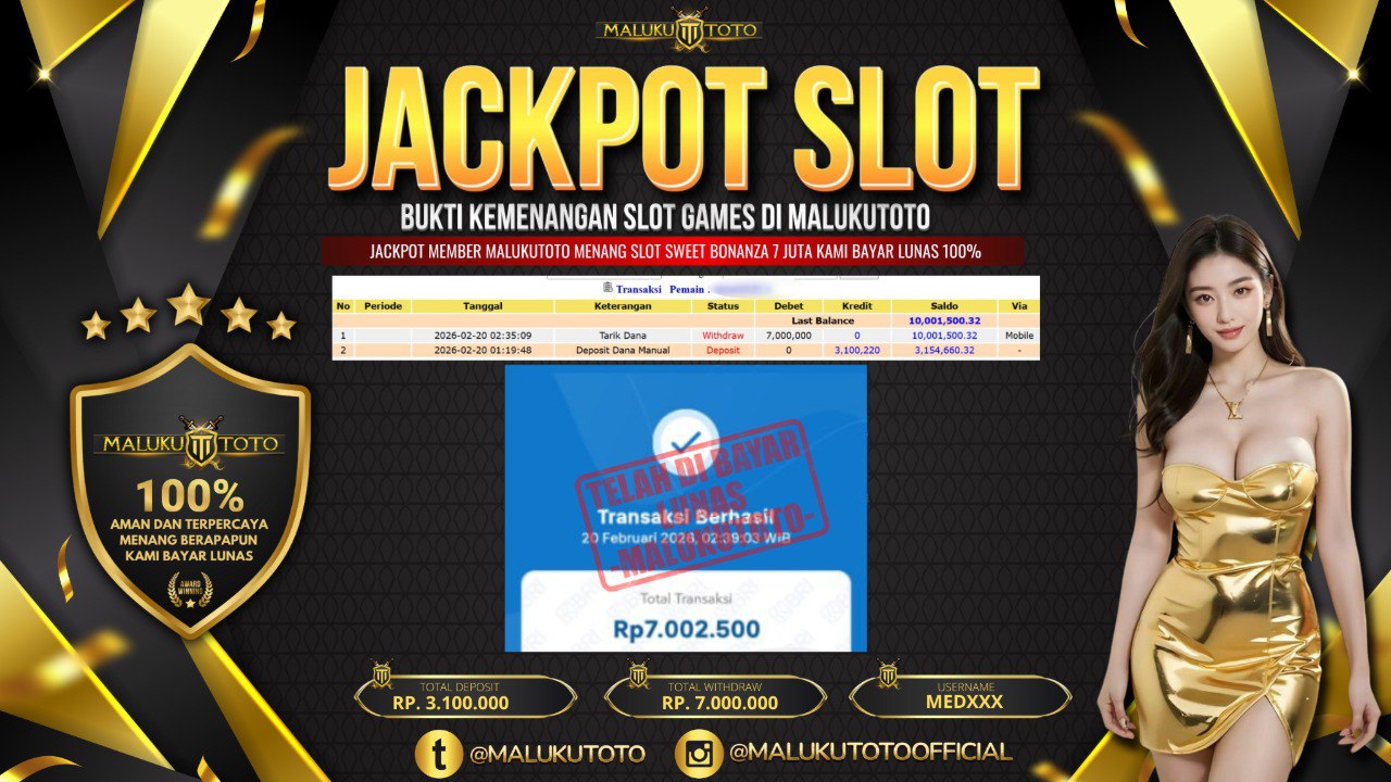 Selamat kepada User id : MED*** Telah berhasil mendapatkan kemenangan besar pada permainan SLOT SWEET BONANZA kemenangan Sebesar Rp.7.000.000, Setelah mengisi formulir withdraw dengan kurung waktu hanya 3 – 5 menit pihak malukutoto sudah melakukan transfer kepada pemilik Userid dan dana sudah dapat di cairkan oleh pemenang. Bukti pembayaran yang kami berikan merupakan bukti pembayaran yang SAH / VALID yang langung di dapatkan melaui tanda transfer transaksi dari Bank yang di tuju.